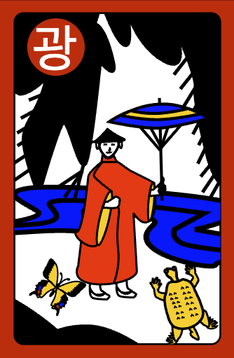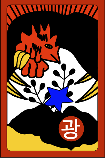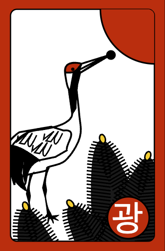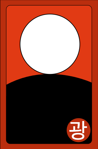 There are five brights. Three or more begin to score — but the December Rain bright (비광 · Bigwang) discounts the score by one when it's part of the count.